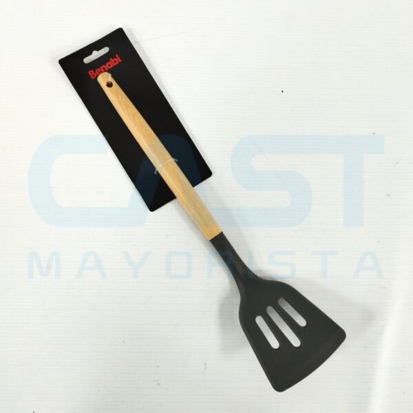 ESPATULA SILICONA RANURADA C/ MANGO MADERA